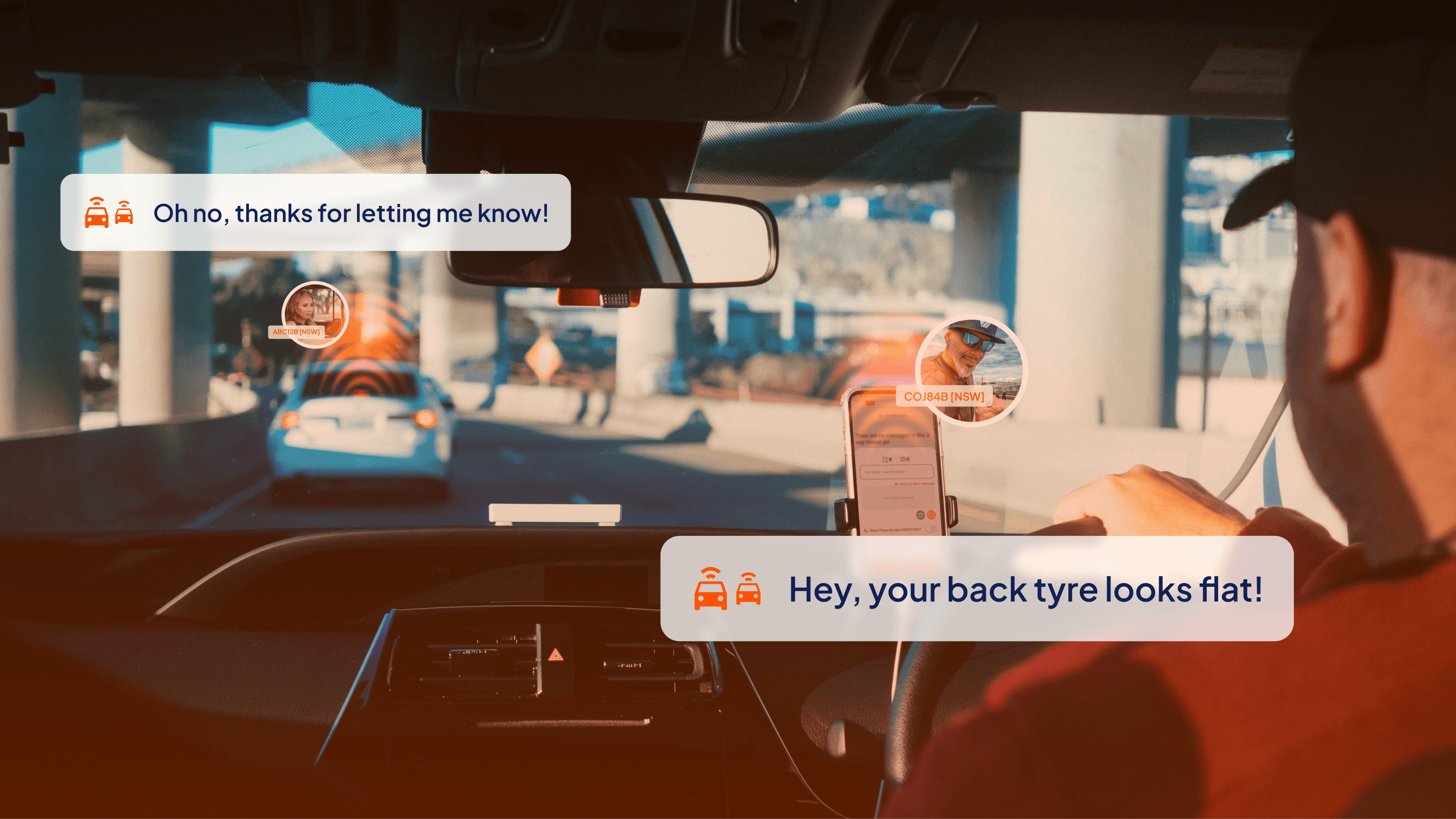 Chat straight to the driver. All you need is their rego.